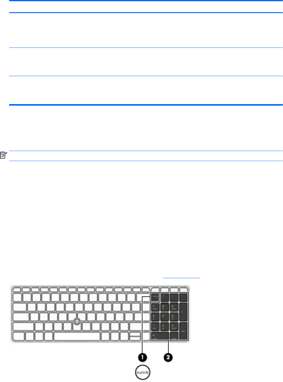 참고: 컴퓨터에 외장 키보드나 숫자 키패드가 연결되어 있으면 내장형 숫자 키패드는 꺼져 있습니다.