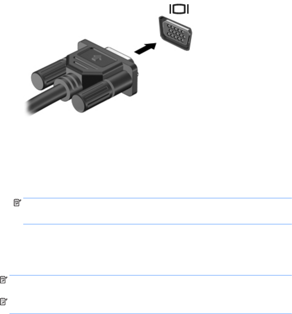 1. 표시된 것처럼 모니터 또는 프로젝터에서 컴퓨터의 VAG 포트로 VGA 케이블을 연결합니다.