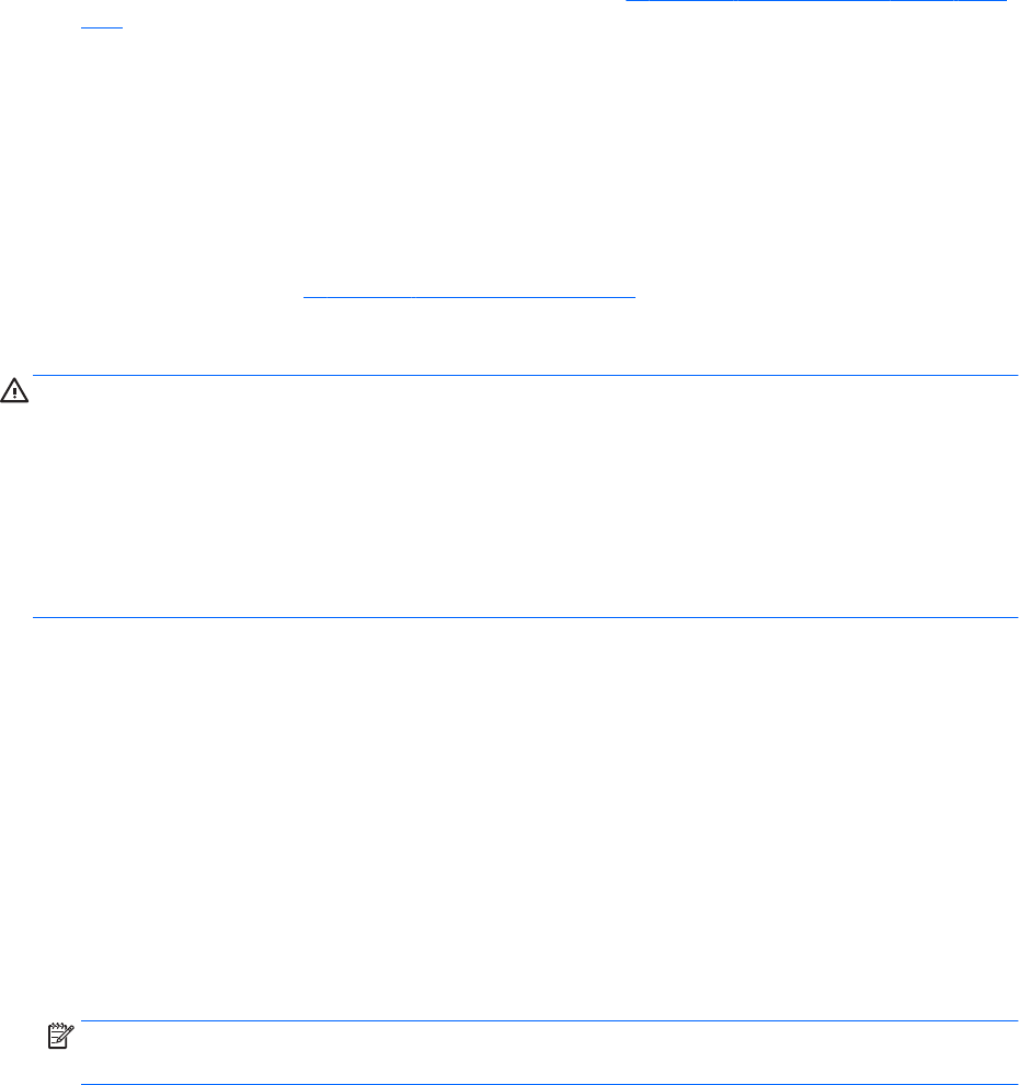주의: 컴퓨터 손상 또는 잘못된 설치의 위험을 줄이려면 컴퓨터가 AC 어댑터를 사용하여 신뢰성 높은 외부