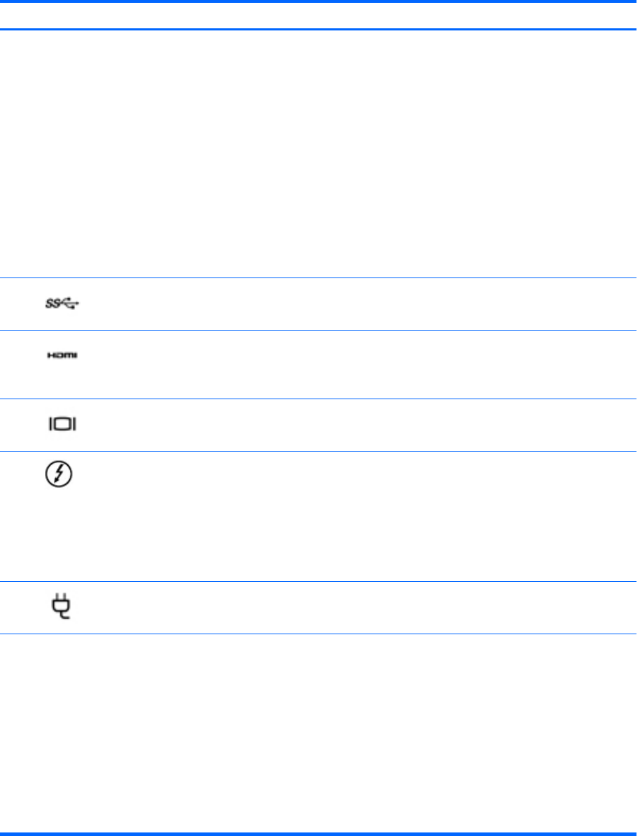 (3) USB 3.0 port Connects an optional USB device, such as a keyboard, mouse,