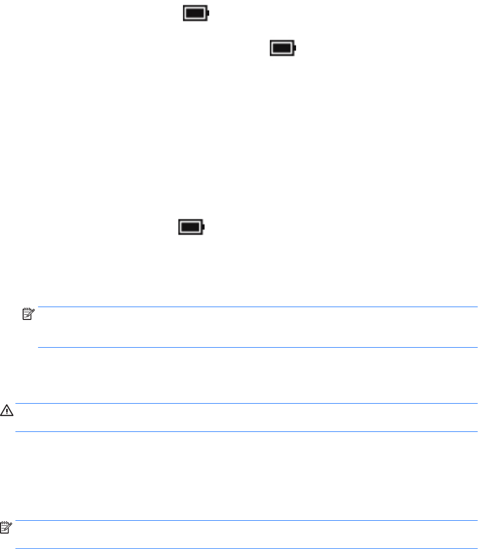 Dierent power meter icons indicate whether the computer is running on battery or external power. The icon