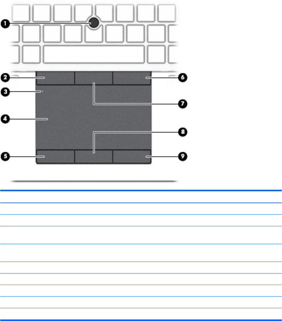 (8) Центральна кнопка сенсорної панелі Виконує функції центральної кнопки зовнішньої миші.