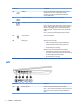 (1) Security cable slot Attaches an optional security cable to the computer.