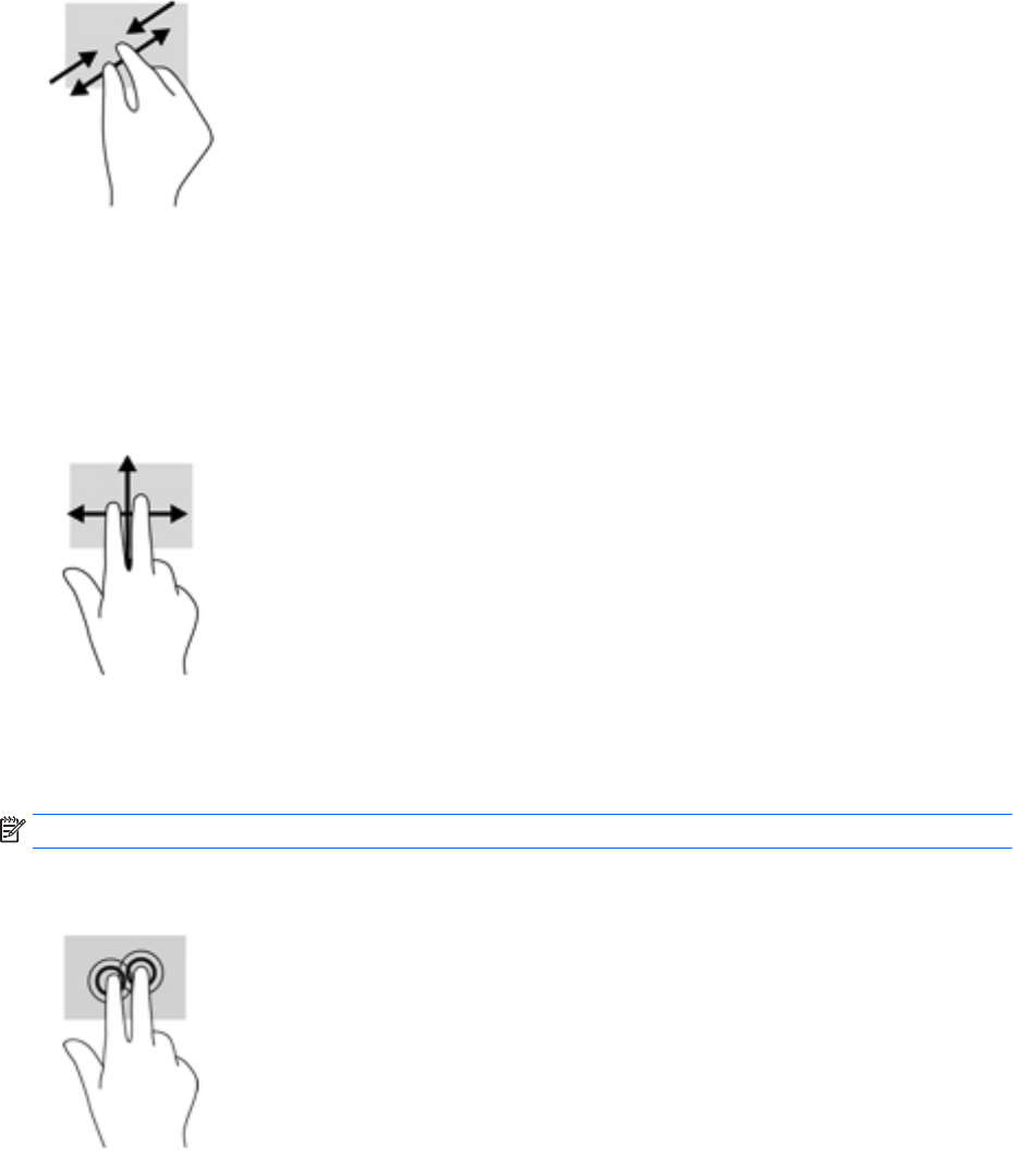 İki parmağınızı birlikte Dokunmatik Yüzey alanına veya dokunmatik ekrana yerleştirip, ardından