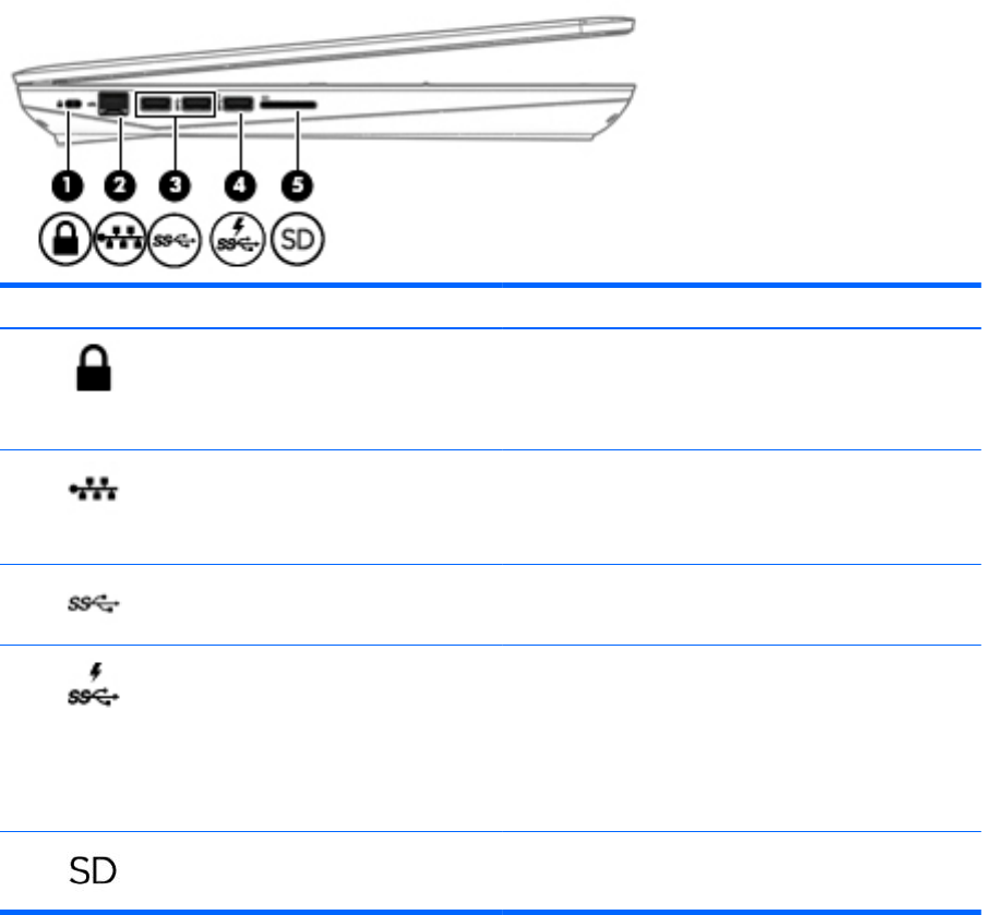 (4) USB 3.0 charging (powered) port Connects an optional USB device, such as a keyboard, mouse,