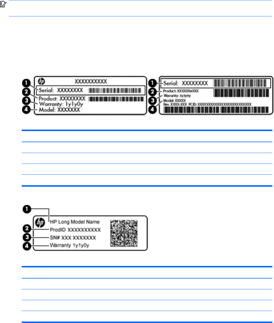 Service label—Provides important information to identify your computer. When contacting support, you