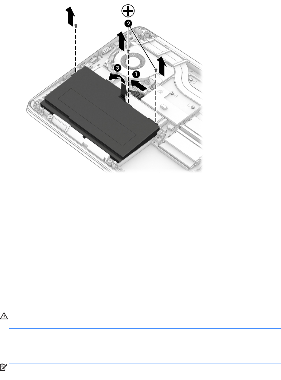 6. Trageţi de clapeta acumulatorului (3) şi scoateţi acumulatorul din computer.