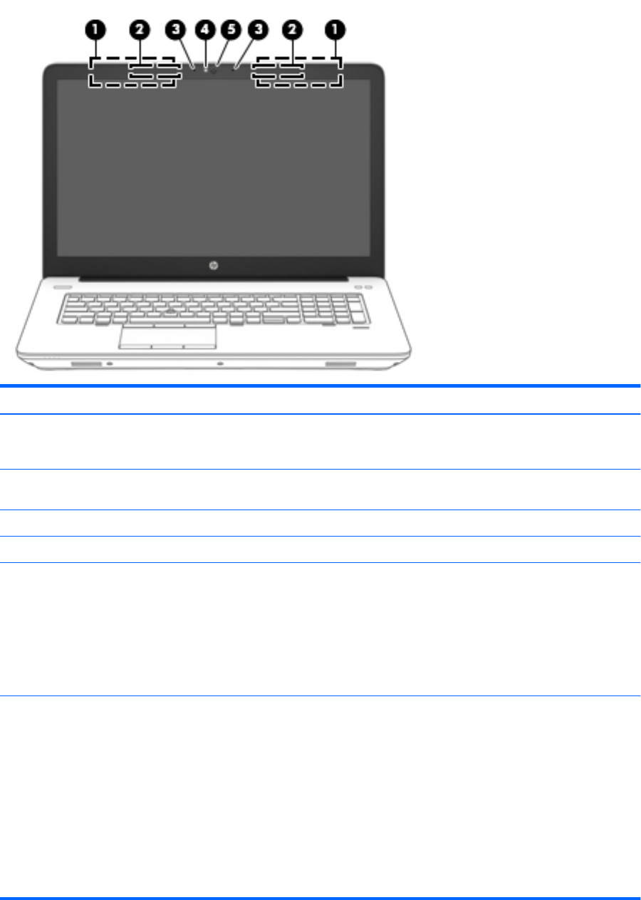 (1) Антени WLAN* Надсилання й отримання сигналів безпроводової мережі для