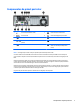 Componentes do painel frontal A configuração da unidade pode variar dependendo do modelo. Alguns modelos têm uma tampa de painel que cobre o compartimento de unidade óptica fina. 1 Unidade óptica fina (opcional) 6 Conector para fone de ouvido 2 Porta USB 2.0 de Carregamento (com alimentação) (preta) 7 Botão Liga/Desliga de dois estados 3 Porta USB 2.0 (preta) 8 Luz de atividade da unidade de disco rígido 4 Portas USB 3.