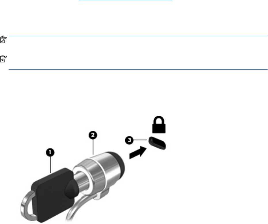 3. Inserire il cavo con lucchetto nell’apposito attacco sul computer (3) e bloccarlo con la chiave