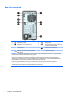 Non-vPro rendszerek 1 Hangbemeneti aljzat 5 USB 3.x port (2) 2 DisplayPort monitorcsatlakozók (2) 6 Hangkimeneti aljzat a saját áramellátással rendelkező audioeszközökhöz 3 Opcionális port 7 RJ-45 aljzat (hálózati aljzat) 4 USB 2.0 portok ébresztés S4/S5 állapotból funkcióval (4) 8 Tápkábel csatlakozója MEGJEGYZÉS: Ha USB-billentyűzetet használ, a HP azt javasolja, hogy a billentyűzetet csatlakoztassa az S4/S5 állapotból történő ébresztés funkciót biztosító USB 2.0 portok egyikéhez.