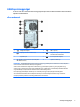 Előlapi részegységek A meghajtó-konfiguráció a típustól függően változhat. Egyes modelleken az optikaimeghajtó-rekeszt takarólemez fedi. 1 5,25 hüvelykes meghajtórekesz (az előlap mögött) 6 USB 2.0 port HP Sleep and Charge szolgáltatással* 2 Vékony optikai meghajtó (opcionális) 7 USB 2.0 port 3 Kétállású bekapcsológomb 8 USB 3.