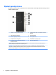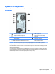 Dijelovi s prednje strane Konfiguracija pogona može se razlikovati ovisno o modelu. Neki modeli imaju masku štitnika koja prekriva odjeljak optičkog pogona. 1 Ležište 5,25-inčnog pogona (iza okvira) 6 Priključak USB 2.0 s HP-ovom funkcijom mirovanja i punjenja* 2 Tanki optički pogon (dodatno) 7 USB 2.0 priključak 3 Gumb za napajanje s dva stanja 8 USB 3.