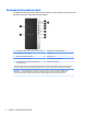 Composants du panneau avant La configuration des unités peut être différente selon le modèle. Certains modèles sont munis d'un cache protecteur recouvrant le compartiment de l'unité optique. 1 Compartiment de lecteur de 5,25 po (derrière le cache) 6 Port USB 2.0 avec HP Veille et Charge* 2 Lecteur optique fin (en option) 7 Port USB 2.0 3 Bouton d'alimentation double état 8 Ports USB 3.