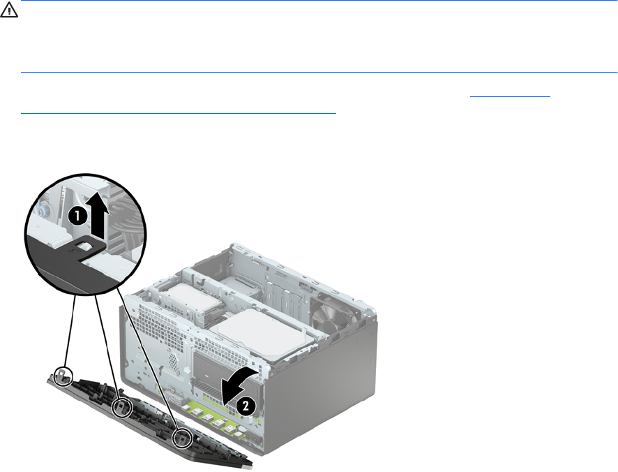 6. Ανασηκώστε τις τρεις προεξοχές που βρίσκονται στο πλάι της πρόσοψης (1) και έπειτα περιστρέψτε την