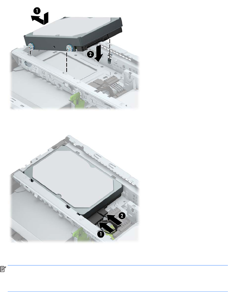 8. Σύρετε το άκρο της μονάδας δίσκου στη θήκη της (1), και, στη συνέχεια, χαμηλώστε πλήρως τη μονάδα