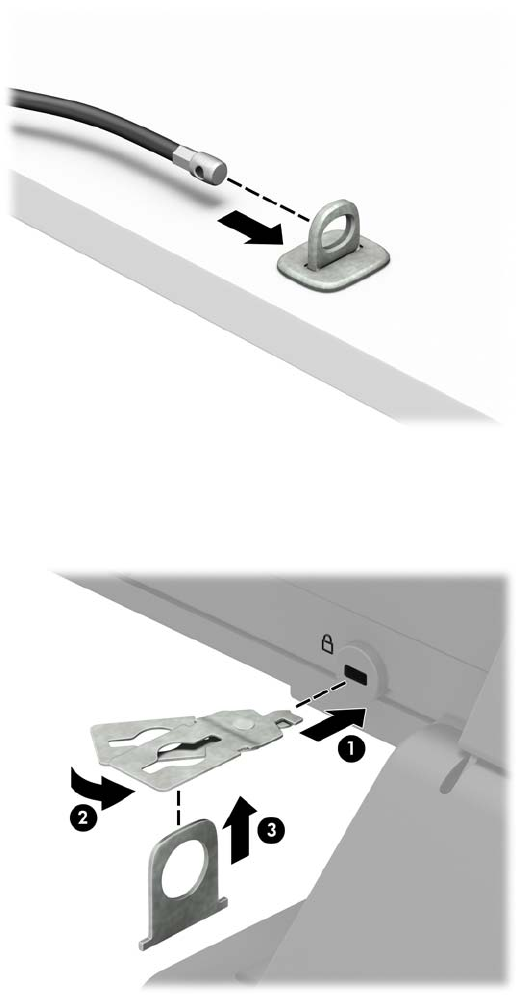 3. Σύρετε το καλώδιο ασφαλείας μέσα από το συνδετήρα καλωδίου ασφαλείας.