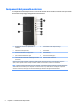 Componenti del pannello anteriore La configurazione dell'unità può variare a seconda del modello. Alcuni modelli sono dotati di un coperchietto del frontalino che protegge l'alloggiamento dell'unità ottica. 1 Alloggiamento unità da 5,25 pollici (dietro il frontalino) 6 Porta USB 2.0 con HP Sleep and Charge* 2 Unità ottica sottile (opzionale) 7 Porta USB 2.0 3 Pulsante di alimentazione a doppio stato 8 Porte USB 3.