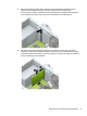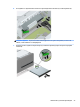 6. Отсоедините от задней панели оптического дисковода кабель питания (1) и кабель данных (2).