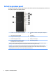 Súčasti na prednom paneli Konfigurácia jednotky sa môže pri jednotlivých modeloch líšiť. Niektoré modely majú prázdny článok krytu, ktorý zakrýva pozíciu pre optickú jednotku. 1 Pozícia na 5,25-palcovú jednotku (za panelom) 6 Port USB 2.0 s funkciou režimu spánku a nabíjania od HP* 2 Tenká optická jednotka (voliteľné) 7 Port USB 2.0 3 Dvojpolohové tlačidlo napájania 8 Porty USB 3.