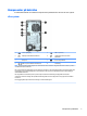 Komponenter på frontpanelen Enhetskonfiguration kan variera beroende på modell. Vissa modeller har ett panelskydd som täcker enhetsfacket för den optiska enheten. 1 Hårddiskfack på 5,25 tum (bakom täckramen) 6 USB 2.0-port med HP Sleep and Charge* 2 Optisk enhet, Slim-modell (tillval) 7 USB 2.0-port 3 Strömbrytare med två lägen 8 USB 3.