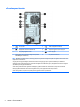 Ön panel bileşenleri Sürücü yapılandırması da modele göre değişiklik gösterebilir. Bazı modellerde optik sürücü yuvasını örten çerçeve kapağı bulunur. 1 5,25 inç sürücü yuvası (çerçevenin arkasında) 6 HP Uyku ve Şarj özellikli USB 2.0 bağlantı noktası* 2 İnce optik sürücü (isteğe bağlı) 7 USB 2.0 bağlantı noktası 3 Çift durumlu güç düğmesi 8 USB 3.