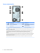 Компоненти передньої панелі Конфігурація привода залежить від моделі. Деякі моделі обладнано заглушкою, що закриває відсік для оптичного привода. 1 Відділення для 5,25-дюймового диска (за панеллю) 6 Порт USB 2.0 із функцією HP Sleep and Charge* 2 Тонкий пристрій для читання оптичних дисків (додатково) 7 Порт USB 2.0 3 Кнопка живлення з двома положеннями 8 Порти USB 3.