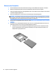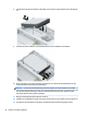 7. Ziehen Sie den Riegel neben der Festplatte nach außen (1), drehen Sie die Festplatte nach oben (2) und