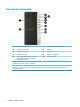 Front panel components (1) 5.25-inch drive bay (behind bezel) (6) USB 2.0 port with HP Sleep and Charge* (2) Slim optical drive (optional) (7) USB 2.0 port (3) Dual-state power button (8) USB 3.