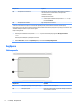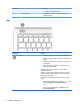 (2) Skārienpaneļa zona Nolasa jūsu pirkstu žestus, lai pārvietotu rādītāju vai aktivizētu