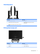 Sānu komponenti Komponents Komponents 1 Optiskais diskdzinis (izvēles) 4 Austiņu ligzda 2 Optiskā diskdziņa izstumšanas poga (izvēles) 5 Pirkstu nospiedumu lasītājs (tikai modeļiem ar skārienekrānu) 3 Audio izejas (austiņu)/audio ieejas (mikrofona) kombinētā ligzda Aizmugurējie komponenti Komponents Komponents 1 DisplayPort 5 RJ-45 (tīkla) ligzda 2 HDMI ports 6 USB 3.