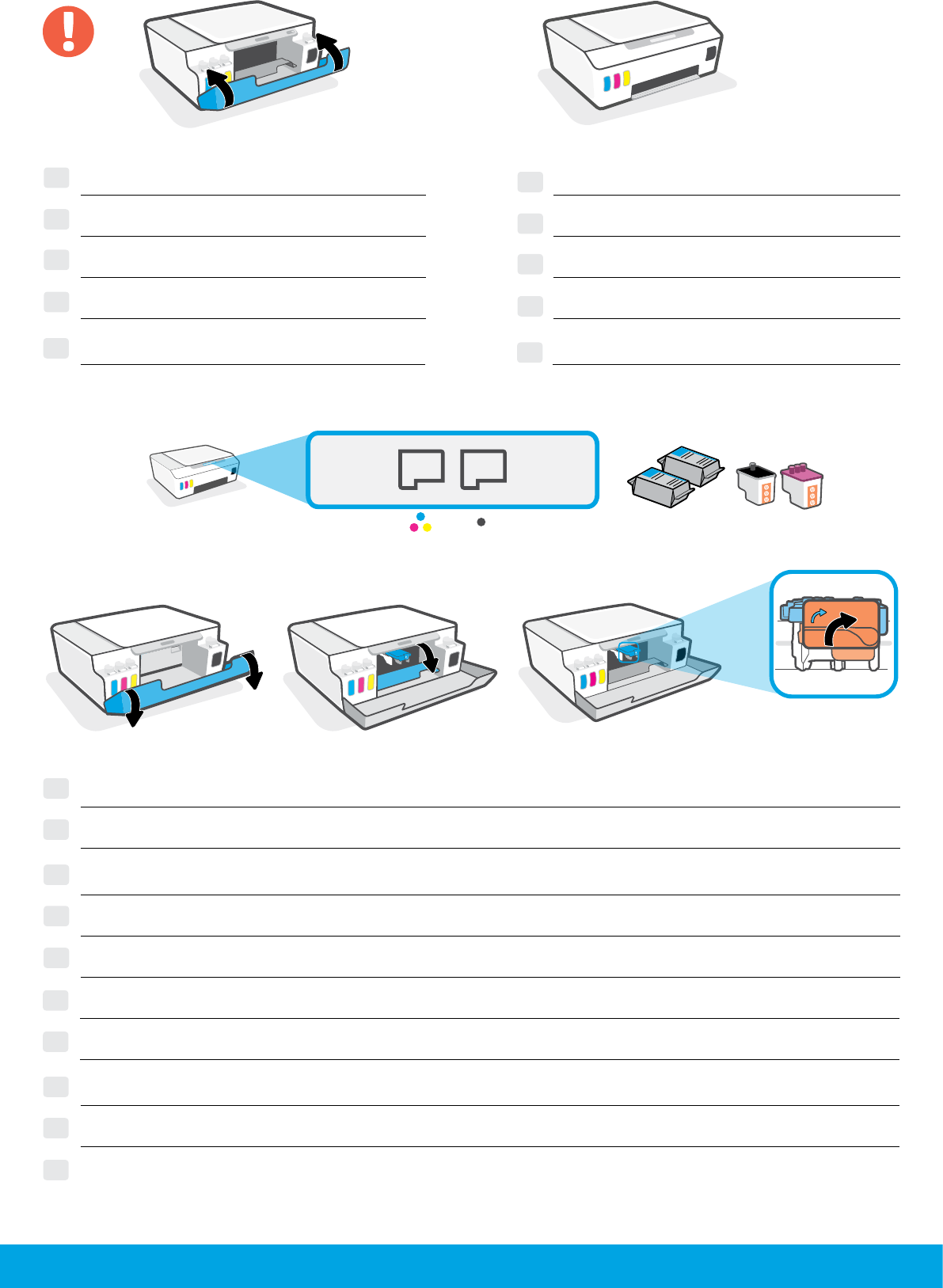 Odprite vratca. Počakajte, da se nosilec kartuše pomakne na sredino in ustavi. Zasukajte oranžno ročko.