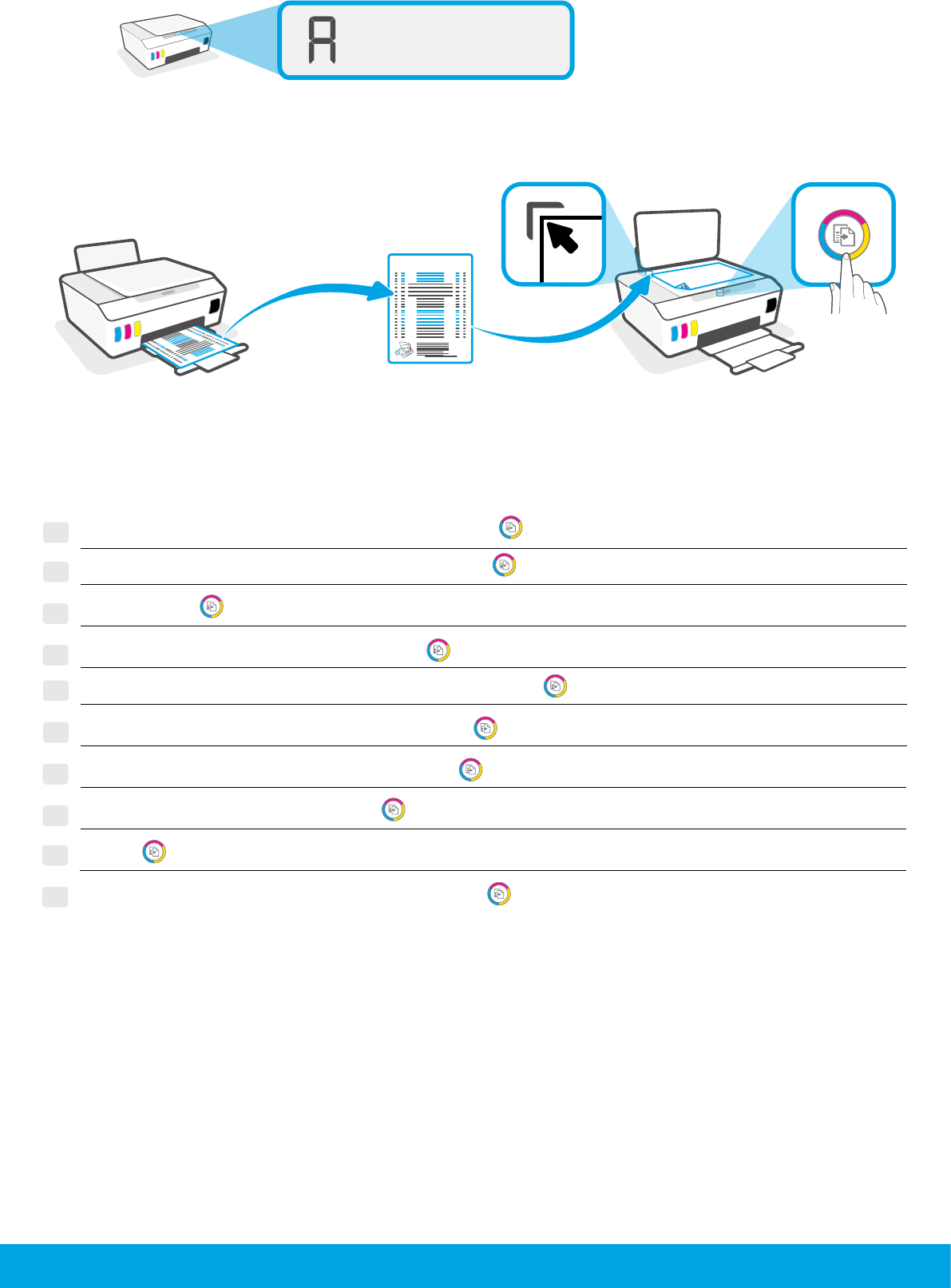 Scanaţi pagina de aliniere imprimată apăsând (butonul Copiere color).