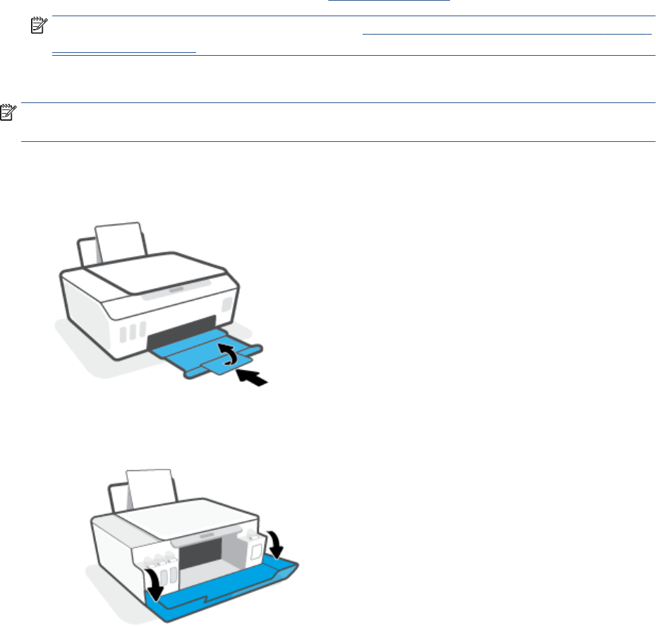 2. 延長排紙トレイを閉じてから、排紙トレイを閉じます。