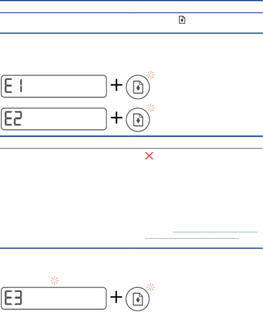 ● ナンバー カウンター アイコンが E3 を表示。同時に、インク/プリントヘッド ランプと リジュー