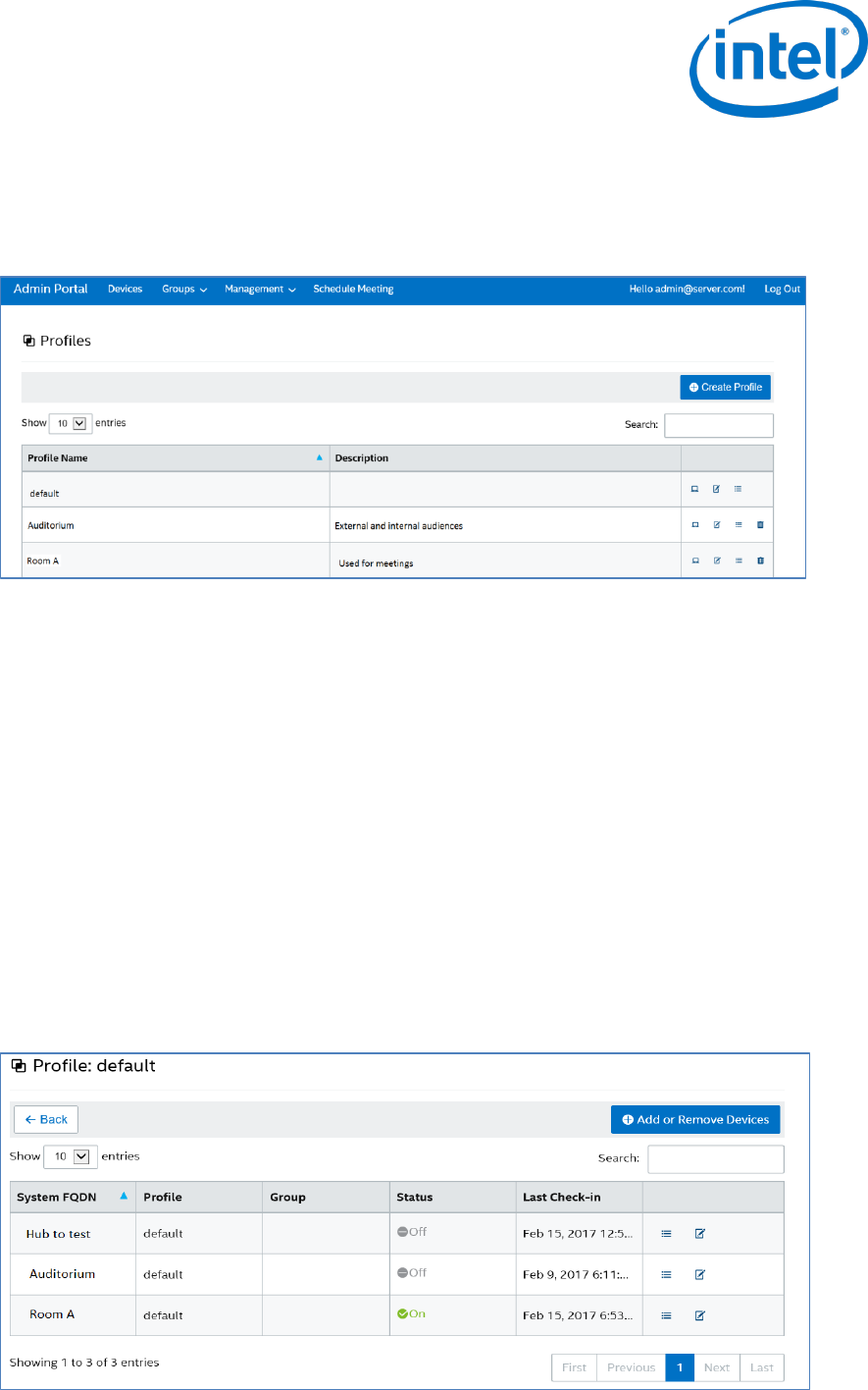 The Profiles page displays the Profile Name and Description of each profile available in the Server.