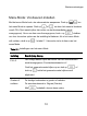 Statistische bewerkingen Tabel 3.2 Voorbeeld van statistische gegevens Toetsen Display Beschrijving :y Hiermee opent u het menu Data bij de huidige waarde voor X(1). 1I1 50I Hiermee voert u de huidige waarden in voor X(1) en Y(1) en wordt de huidige waarde voor X(2) weergegeven. 2I1 65I Hiermee voert u de huidige waarden in voor X(2) en Y(2) en wordt de huidige waarde voor X(3) weergegeven.