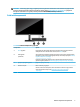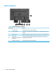 Galiniai komponentai 1-2 lentelė Galiniai komponentai ir jų aprašas 4 Komponentas Aprašas 1. Maitinimo jungtis Skirta kintamosios srovės adapteriui prijungti. 2. Jungtis „DisplayPort“ „DisplayPort“ kabelį prijungia prie šaltinio įrenginio, pvz., kompiuterio arba žaidimų konsolės. 3. HDMI prievadas „HDMI“ kabelį prijungia prie šaltinio įrenginio, pvz., kompiuterio arba žaidimų konsolės. 4. VGA prievadas Iš monitoriaus einantį VGA kabelį prijungia prie šaltinio įrenginio, pvz., kompiuterio.