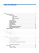 Table of contents 1 Features ........................................................................................................................................................... 1 Identifying hardware ............................................................................................................................. 1 Top components .................................................................................................................. 1 Pointing devices ..........................