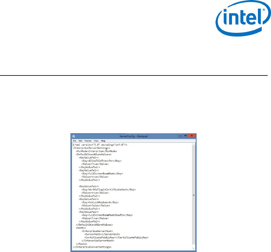 ServerConfig.xml 檔案會在安裝 Intel Unite 軟體的顯示中樞和用戶端元件期間建立。此 xml 檔案在顯示中樞和