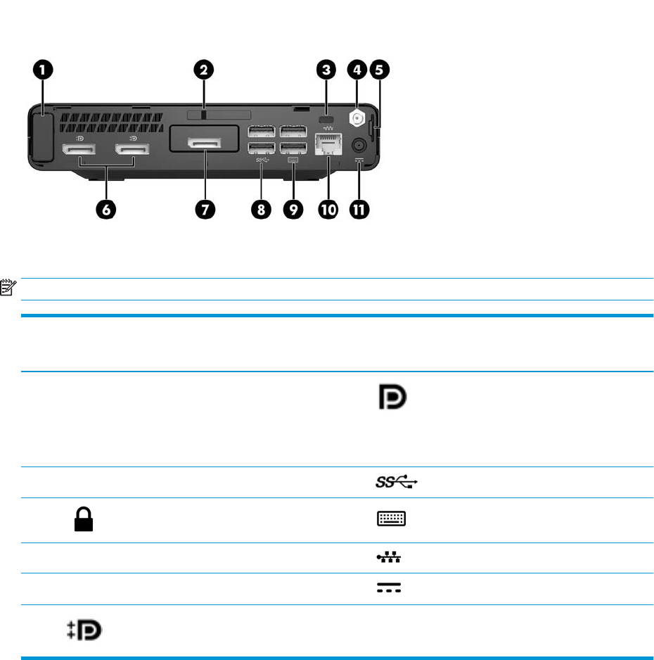 1   Antenos dangtelis 7 DisplayPort (pasirinktinė)