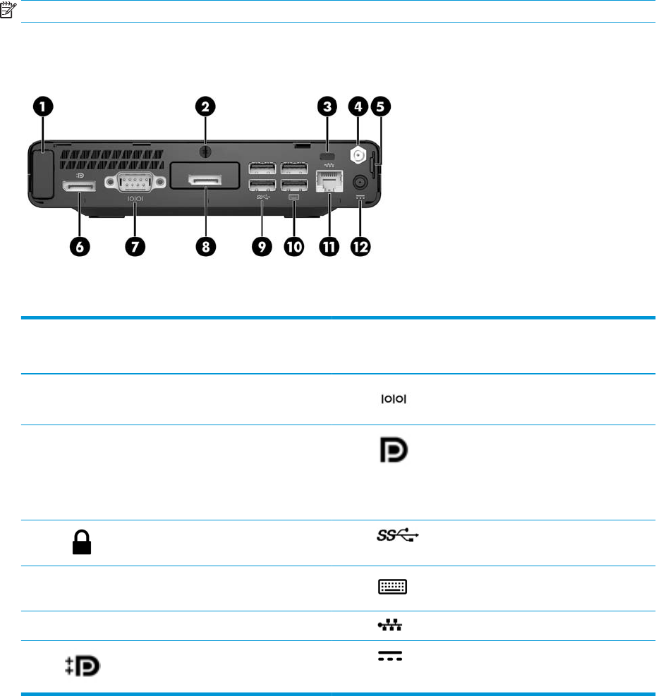 4   Išorinės antenos jungtis 10 USB 2.0 prievadai (2, juodi)