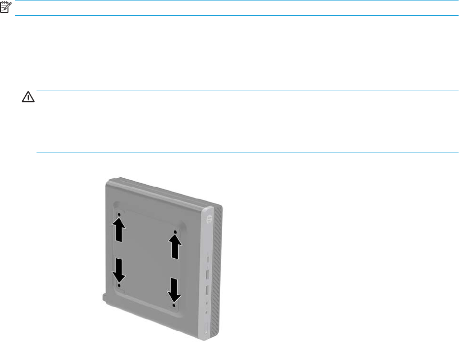 ĮSPĖJIMAS: Šiame kompiuteryje yra pramonės standarto VESA nustatytos 100 mm tvirtinimo