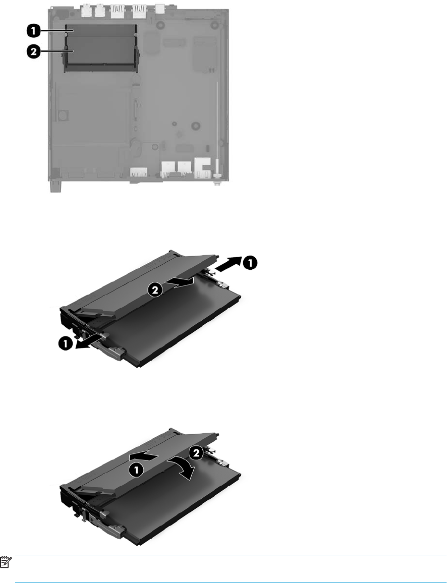 8. Norėdami atminties modulį išimti, pastumkite jo šonuose esančius skląstelius į išorę (1) ir po to