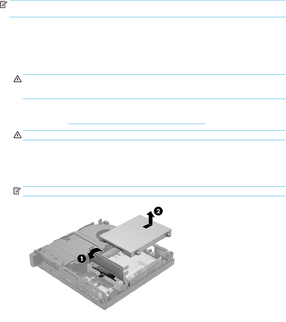 6. Norėdami išimti standųjį diską, pasukite standžiojo disko ksatorių į viršų ir į išorę (1), kad standusis