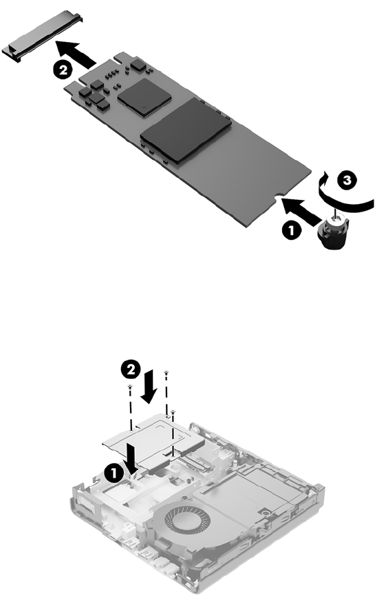 17. Puslaidininkinį diską įspauskite į sistemos plokštę ir tvirtai prisukite pridėtu varžtu (3).