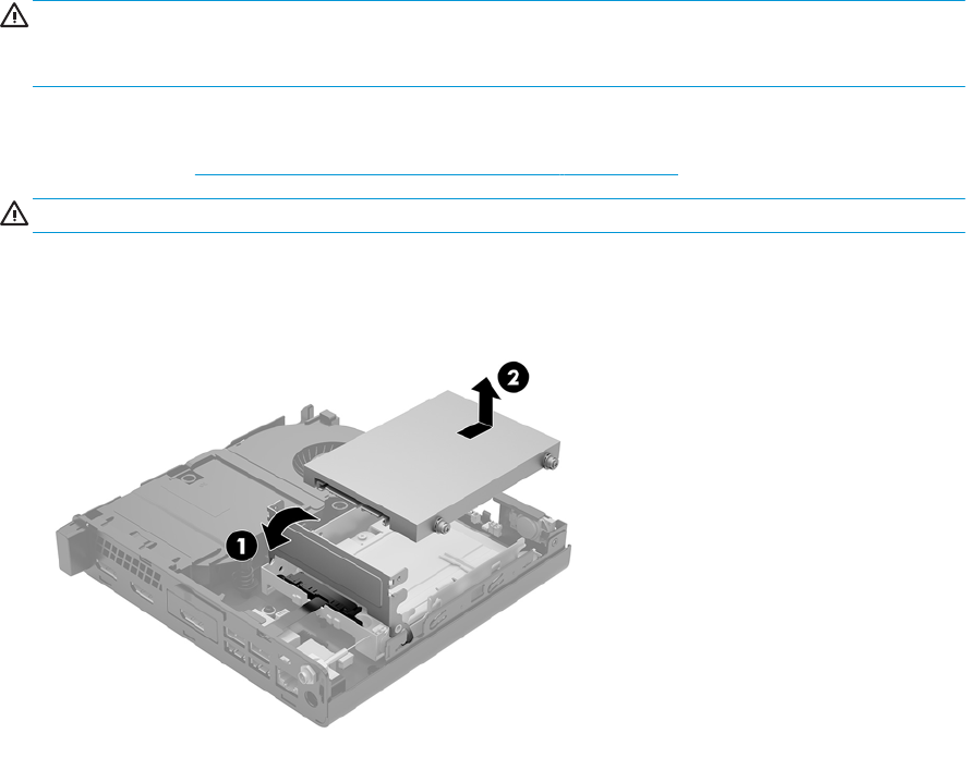 8. Jei jūsų kompiuterio modelis yra 65 W „EliteDesk 800“, išimkite papildomą ventiliatorių, esantį po