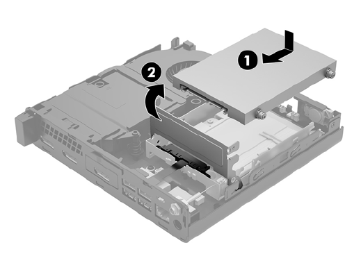 18. Pasukite standžiojo disko ksatorių žemyn, kad standusis diskas užsiksuotų (2).