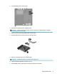22. Zakrenite zasun tvrdog diska prema dolje kako biste učvrstili tvrdi disk (2).