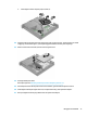 22. Putar kait hard drive ke bawah untuk memasang hard drive (2).